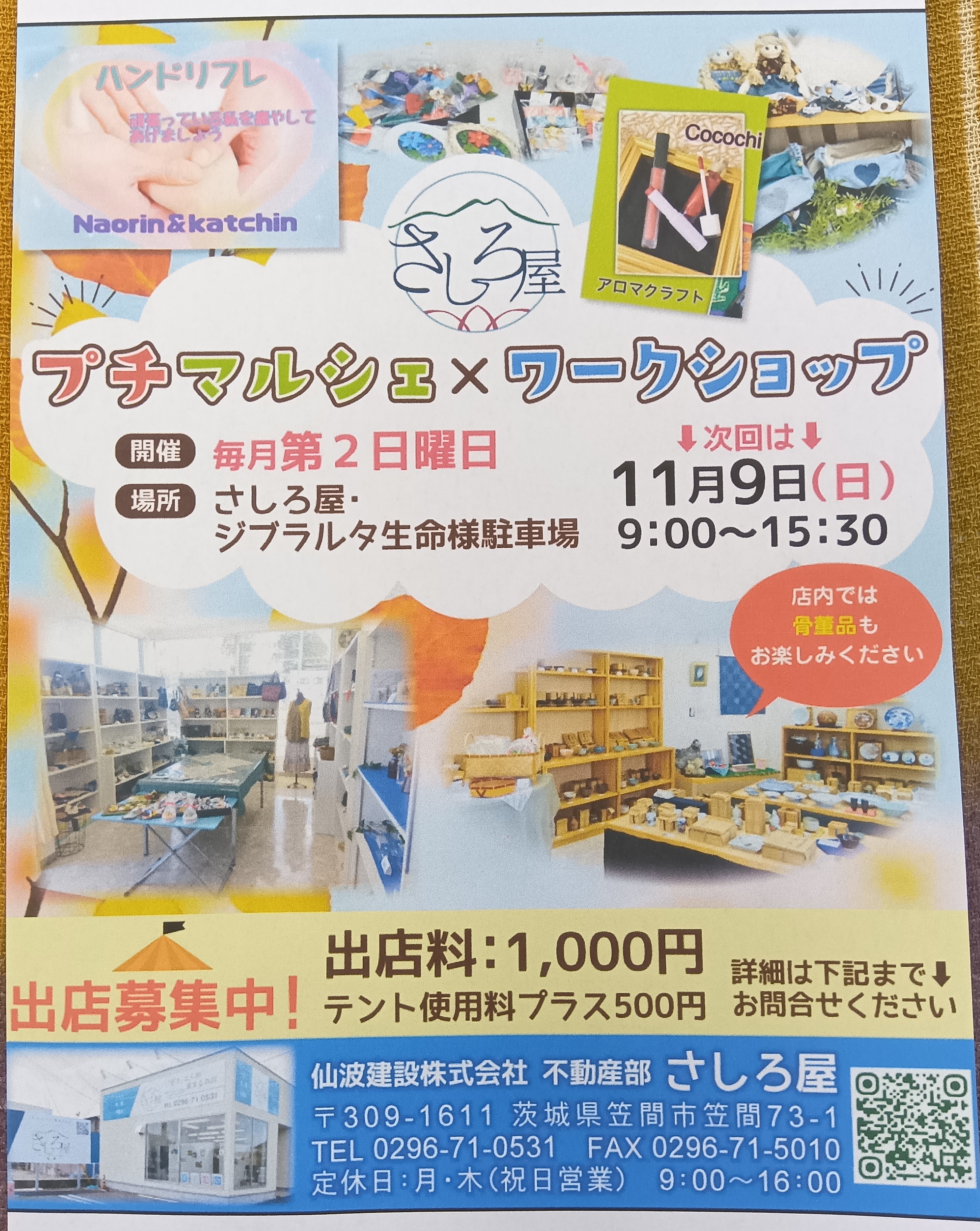 11月9日㈰さしろ屋プチマルシェ×ワークショップ