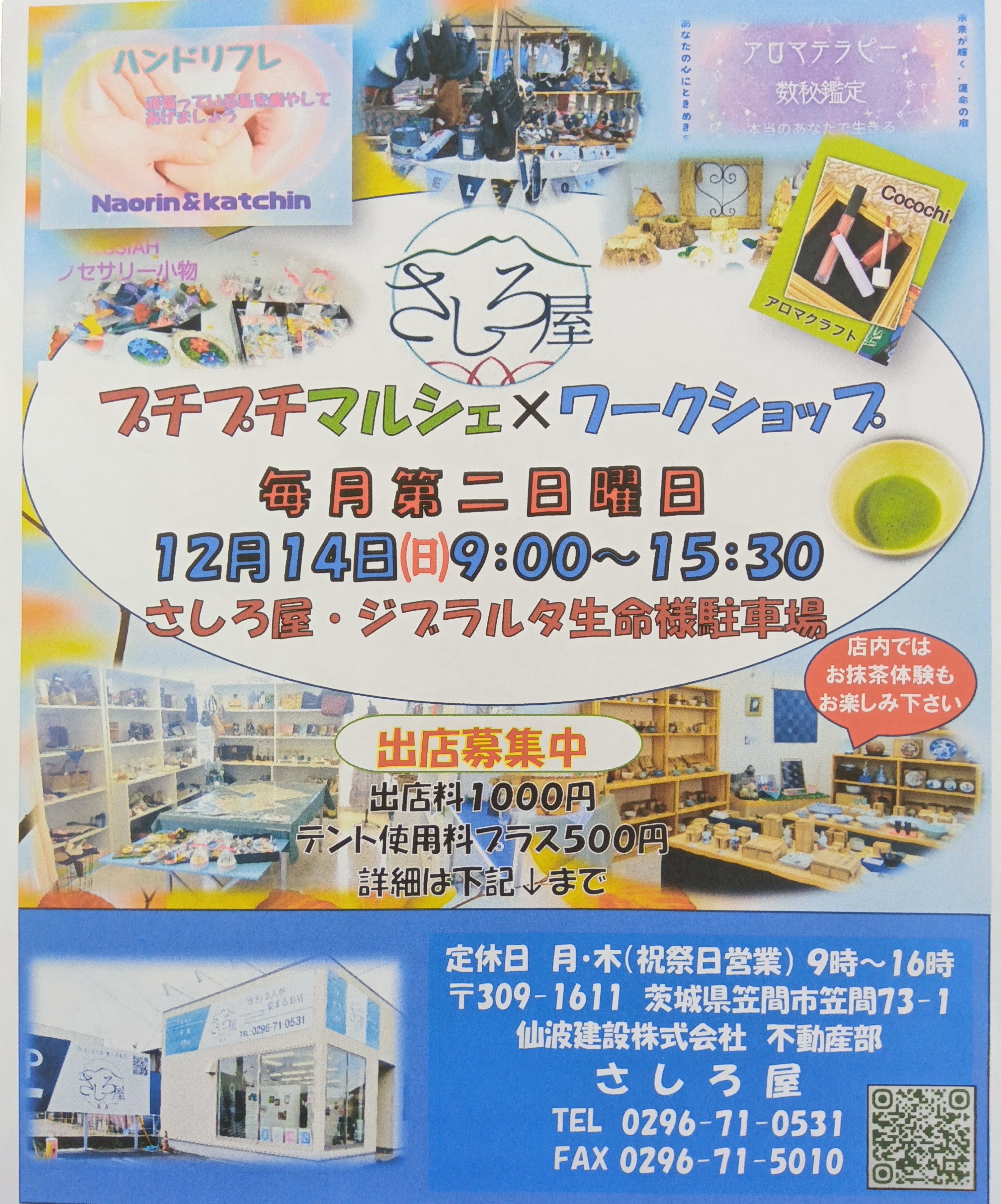 12月14日㈰さしろ屋プチプチマルシェ×ワークショップ